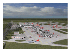 north-south runways, two crosswind runways, and 103 aircraft gate